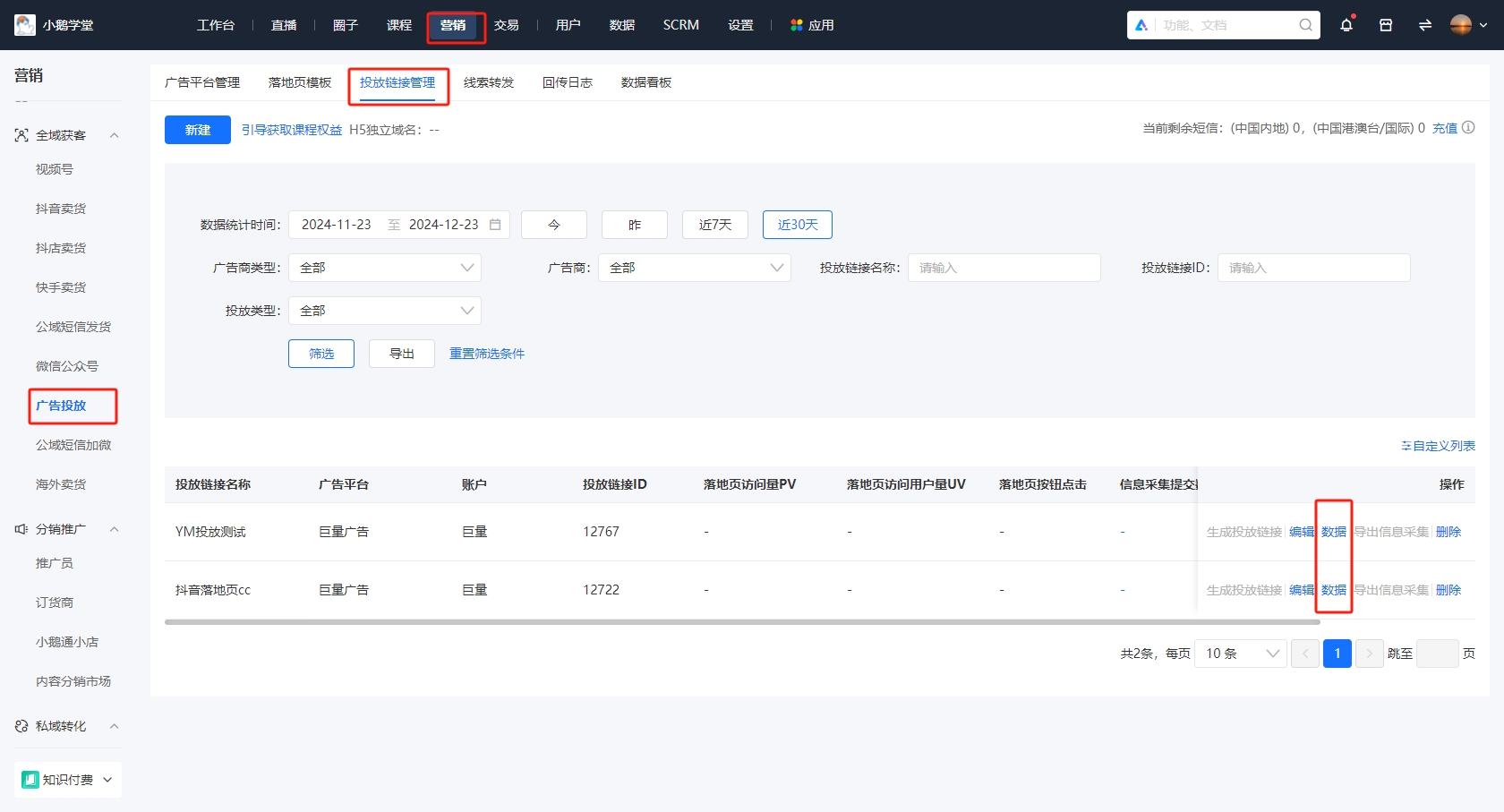 小鹅通全平台广告与素材数据报表